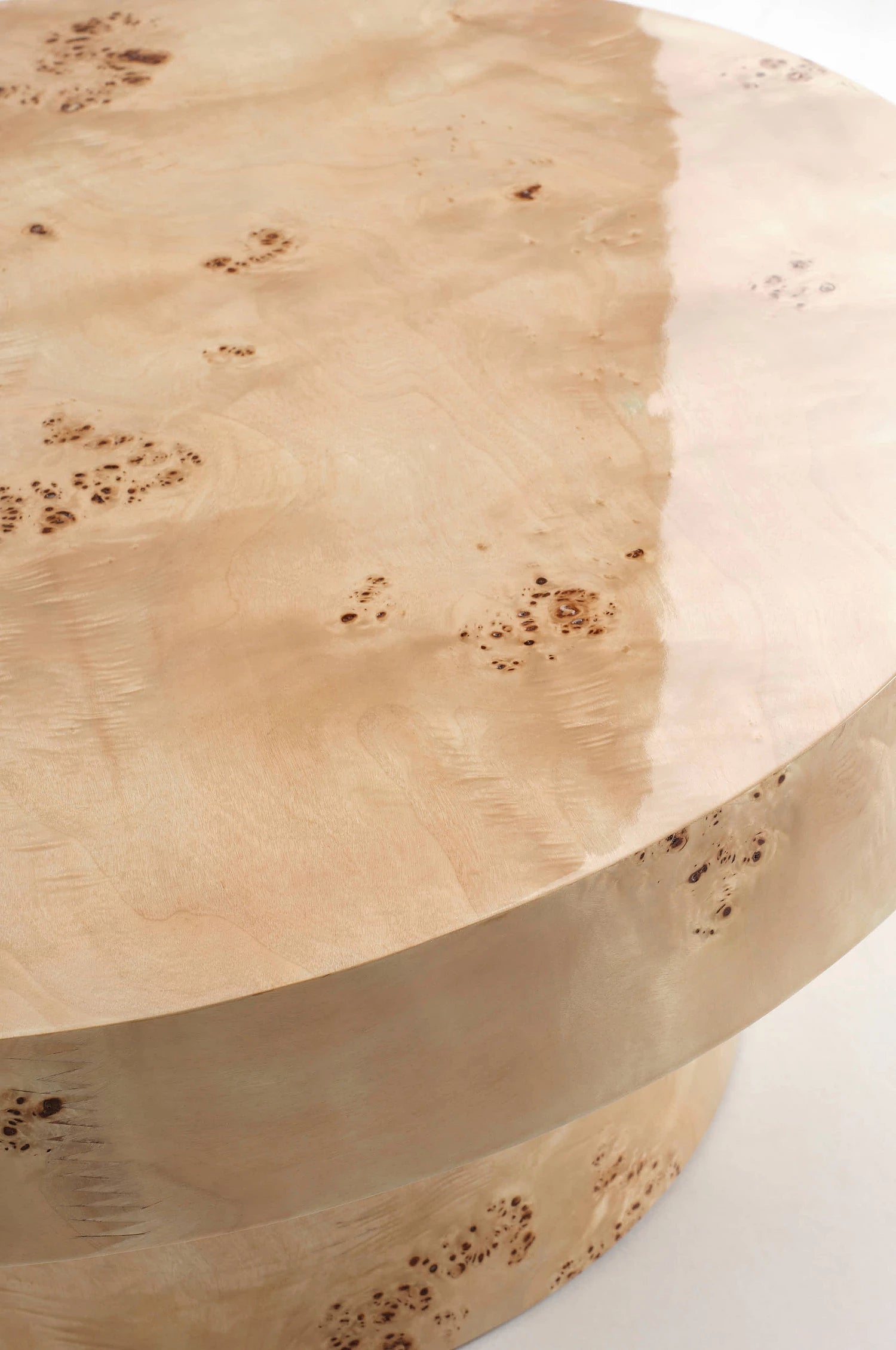 Det runda soffbordet ADA är en elegant mittpunkt i vardagsrummet. Den glansiga rotfanéren ger en naturlig och modern känsla som lyfter hela inredningen. Med sin stilrena design och praktiska storlek passar bordet i många olika hem och inredningsstilar.