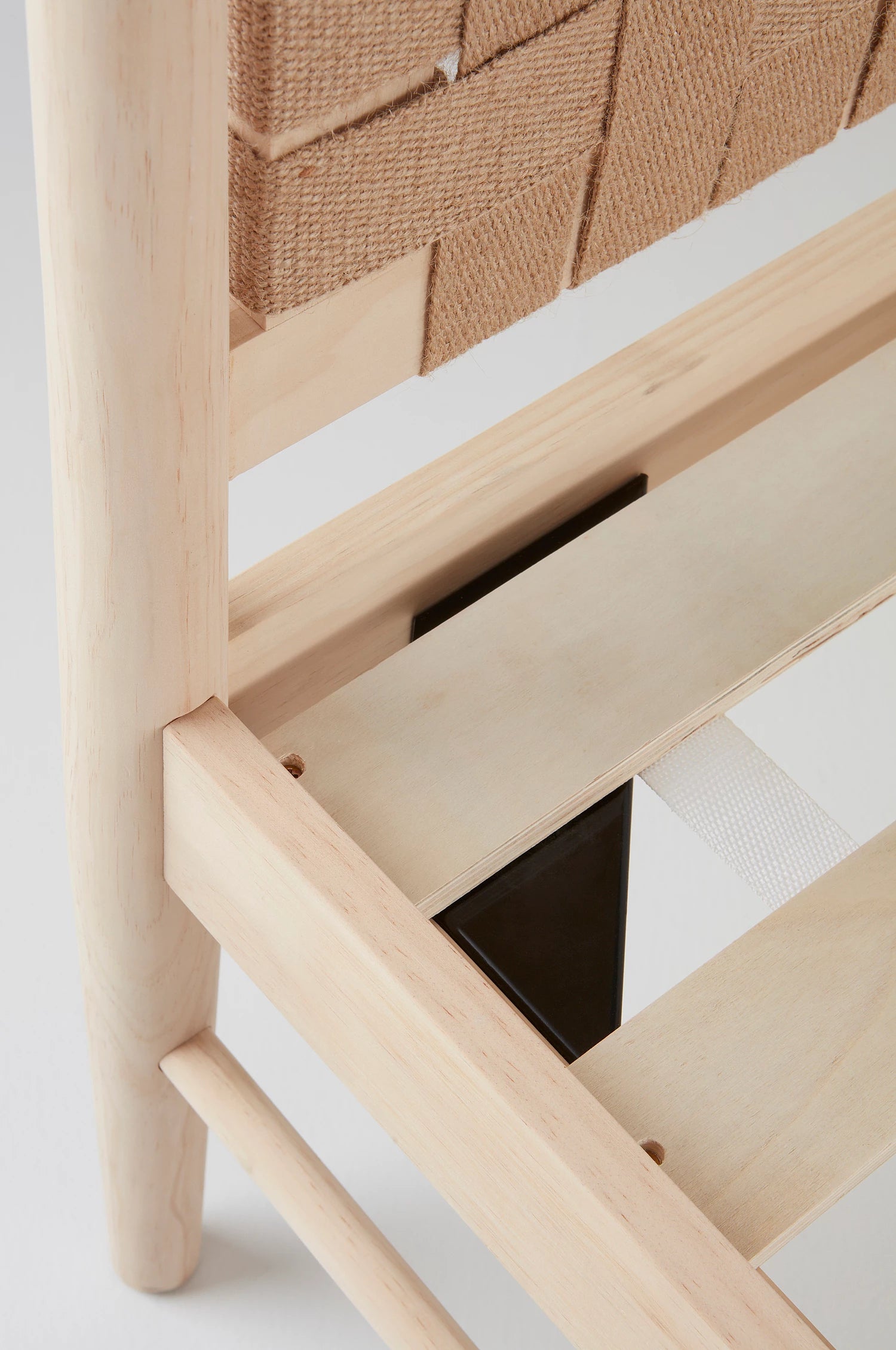 En luftig och tidlös sängram i äkta nordisk anda, tillverkad av FSC-certifierad furu och flätad jute. Den vävda huvudgaveln och den integrerade bänken vid fotänden gör sängen både praktisk och dekorativ. Ytan är såpad för ett naturligt uttryck. Ribbotten i furu ingår, madrass köps separat.