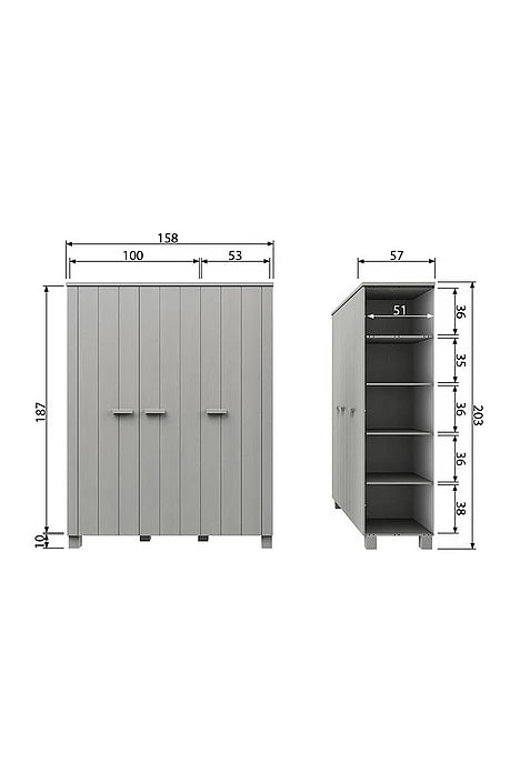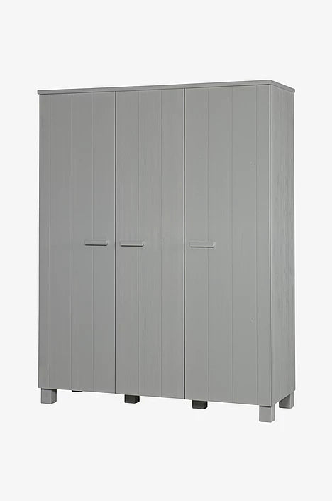 Haven är en generös garderob som kombinerar praktisk förvaring med naturlig charm. Tillverkad i borstad furu med accentträ och lätt ojämn yta får varje garderob sin egen karaktär. Interiören är smart uppdelad med en hängande sektion med hylla på 100 cm och stång för galgar, samt en hylldel med fyra rymliga hyllor på 53 cm – perfekt för att organisera kläder, accessoarer och annat. Dörrarna har trädörrhandtag och stabila metallgångjärn för lång hållbarhet.