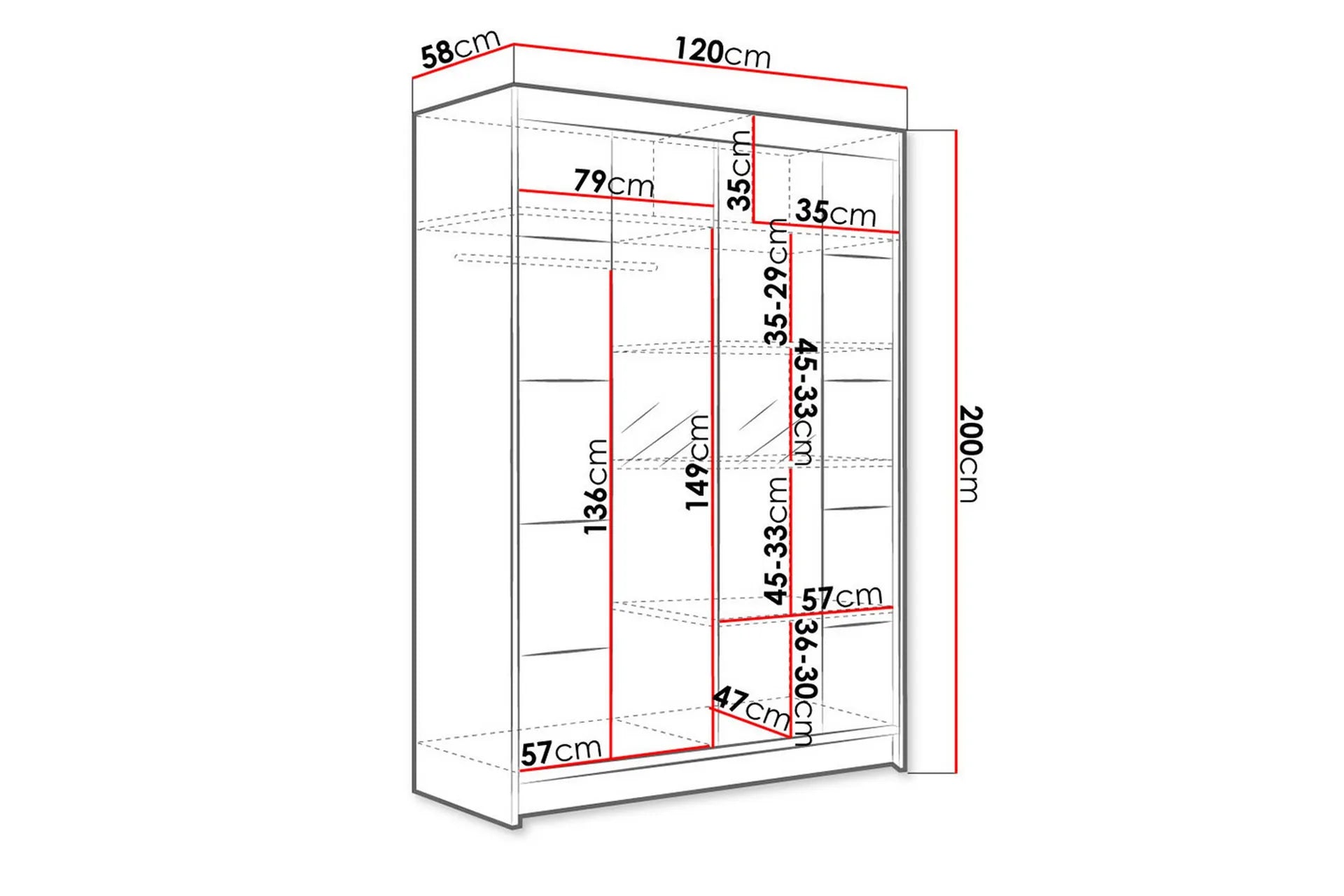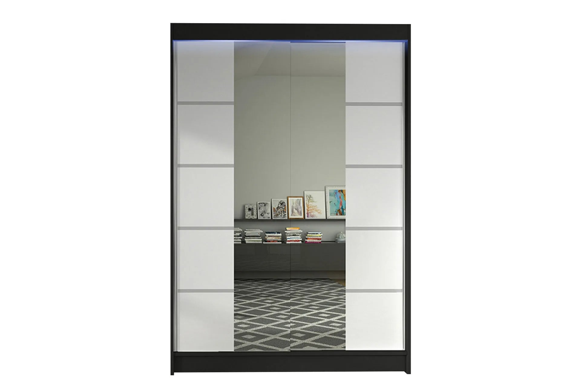 Den stilrena färgkombinationen i svart och vitt ger garderoben ett tidlöst uttryck som passar lika bra i sovrummet som i hallen. De generösa måtten erbjuder gott om utrymme samtidigt som garderobens rena linjer gör den till ett harmoniskt inslag i din inredning.