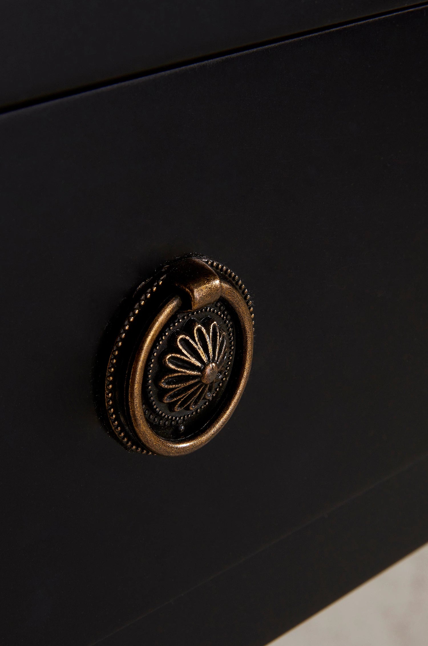 Klassisk sideboard med två små lådor och två hyllplan – perfekt för både förvaring och dekoration. Tillverkad i massiv furu och MDF med gedigen känsla. Passar utmärkt i hall, vardagsrum eller matsal.