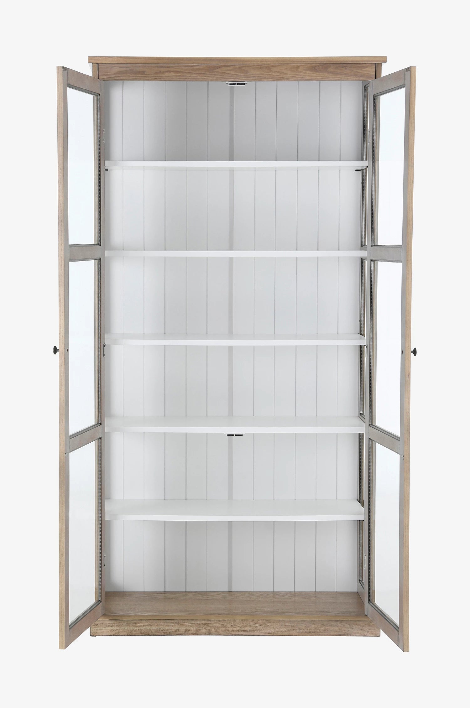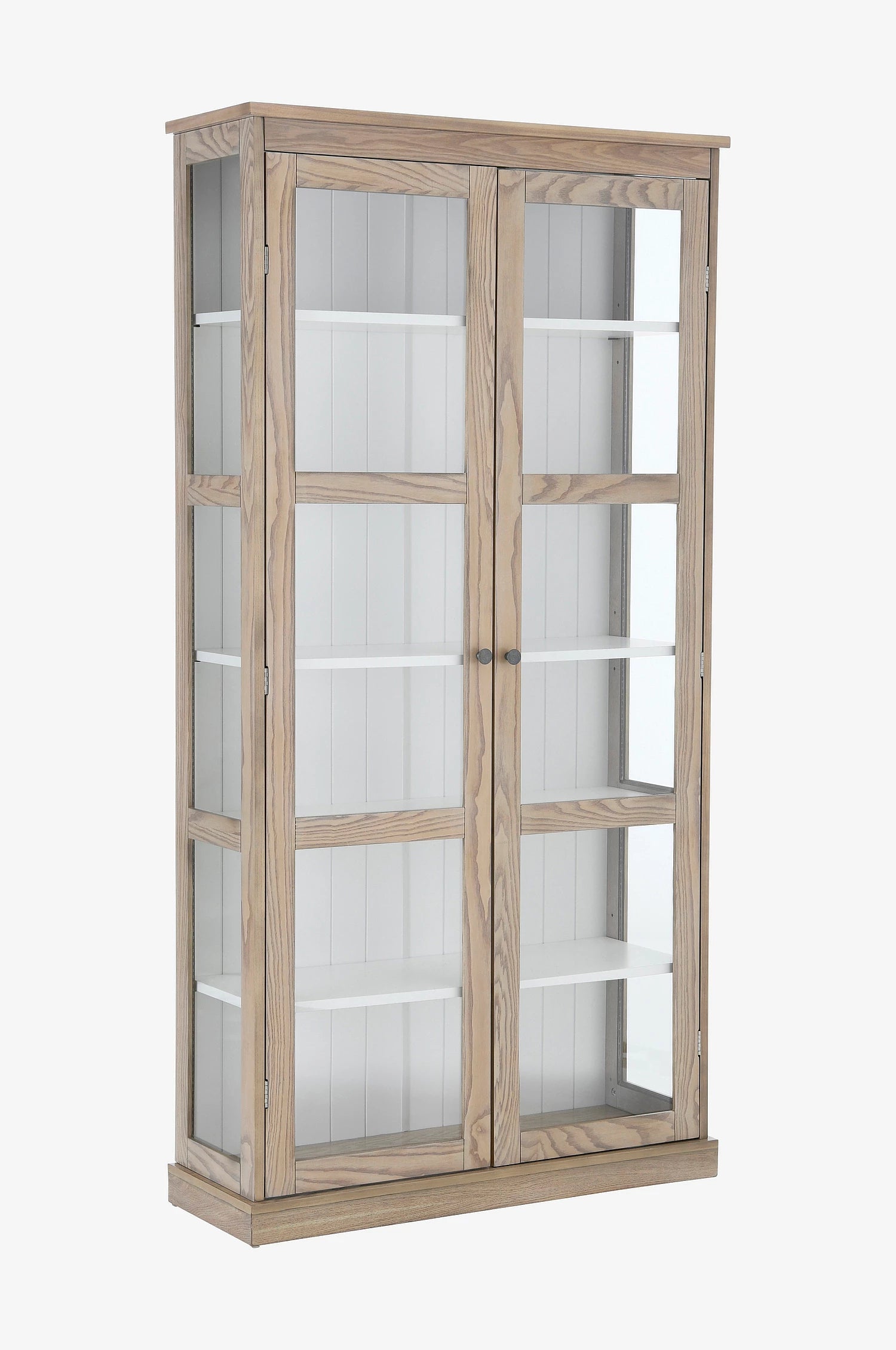 Glas på hela kortsidorna släpper in ljus från flera vinklar och lyfter fram dina finaste prydnader och samlarobjekt. De magnetiska glasdörrarna med elegant antikmässingsfärgade metallknoppar ger en gedigen och tidlös finish.